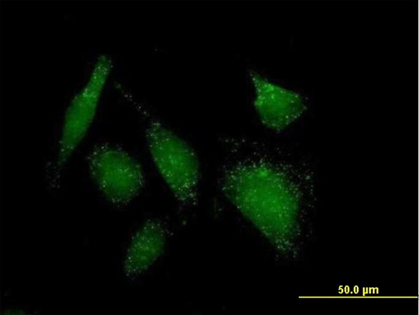 - Immunofluorescence of purified MaxPab antibody to ACOT8 on HeLa cell. [antibody concentration 10 ug/ml]