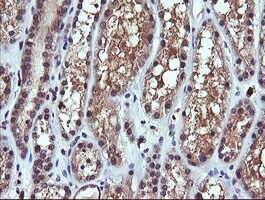 - Immunohistochemical staining of paraffin-embedded human Kidney tissue within the normal limits using anti-PIK3CG mouse monoclonal antibody. (Heat-induced epitope retrieval by 10mM citric buffer, pH6.0, 120°C for 3min, TA505228)