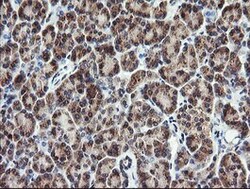 - Immunohistochemical staining of paraffin-embedded human pancreas tissue within the normal limits using anti-PIK3CG mouse monoclonal antibody. (Heat-induced epitope retrieval by 10mM citric buffer, pH6.0, 120°C for 3min, TA505228)