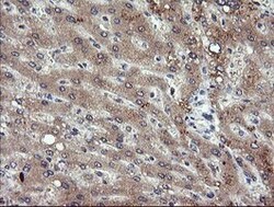 - Immunohistochemical staining of paraffin-embedded human liver tissue within the normal limits using anti-PIK3CG mouse monoclonal antibody. (Heat-induced epitope retrieval by 10mM citric buffer, pH6.0, 120°C for 3min, TA505228)
