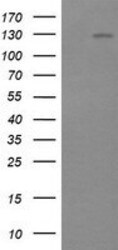 - HEK293T cells were transfected with the pCMV6-ENTRY control (Left lane) or pCMV6-ENTRY PIK3CG (RC207790, Right lane) cDNA for 48 hrs and lysed. Equivalent amounts of cell lysates (5 µg per lane) were separated by SDS-PAGE and immunoblotted with anti-PIK3C. Positive lysates LY419184 (100 µg) and LC419184 (20 µg) can be purchased separately from OriGene.