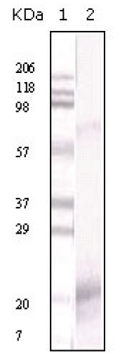 - Western Blot analysis using anti-Human IFNG Monoclonal Antibody against Truncated IFNG Recombinant protein.