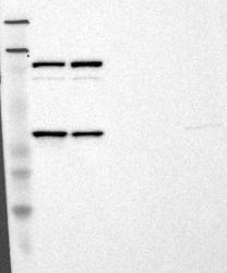 - Western blot analysis of antibody specificity using a routine panel composed of IgG/HSA-depleted human plasma and protein lysates from selected human tissues and cell lines.
