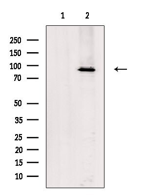 - Western blot analysis of KIF23 in extracts from Hela cells. Samples were incubated with KIF23 polyclonal antibody (Product # PA5-100863). The lane on the left was treated with blocking peptide.