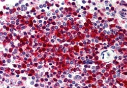 - Immunohistochemistry: paraffin embedded Human Spleen. (Steamed antigen retrieval with citrate buffer pH 6) stained with ARG64196 anti-DKC1 antibody at 5 µg/ml dilution followed by AP-staining.