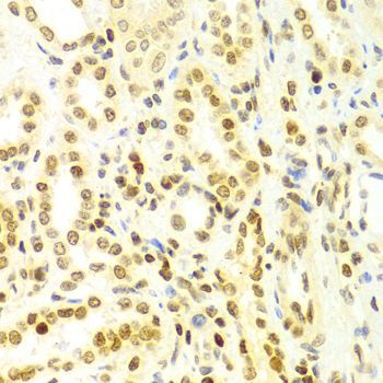 - Immunohistochemistry of paraffin-embedded Human gastric cancer using DKC1 antibody at dilution of 1:100 (x400 lens).