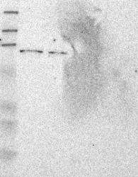 - Single band corresponding to the predicted size in kDa (+/-20%).