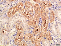 - Formalin-fixed and paraffin embedded rat kidney labeled with Anti-Serine Racemase Polyclonal Antibody, Unconjugated (bs-10474R) at 1:200 followed by conjugation to the secondary antibody and DAB staining.