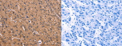 - The image on the left is immunohistochemistry of paraffin-embedded Human liver cancer tissue using (CSNK1D Antibody) at dilution 1/50, on the right is treated with fusion protein. (Original magnification: ?200)