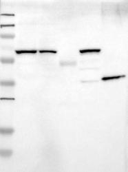 - Western blot analysis of antibody specificity using a routine panel composed of IgG/HSA-depleted human plasma and protein lysates from selected human tissues and cell lines.