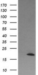 - HEK293T cells were transfected with the pCMV6-ENTRY control (Left lane) or pCMV6-ENTRY CTAG1B (RC213318, Right lane) cDNA for 48 hrs and lysed. Equivalent amounts of cell lysates (5 µg per lane) were separated by SDS-PAGE and immunoblotted with anti-CTAG1. Positive lysates LY400527 (100 µg) and LC400527 (20 µg) can be purchased separately from OriGene.