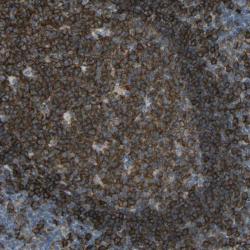 - Immunohistochemical staining of human tonsil shows strong cytoplasmic positivity in germinal center cells.