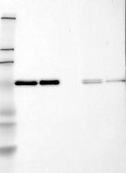 - Western blot analysis of antibody specificity using a routine panel composed of IgG/HSA-depleted human plasma and protein lysates from selected human tissues and cell lines.