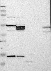 - Western blot analysis of antibody specificity using a routine panel composed of IgG/HSA-depleted human plasma and protein lysates from selected human tissues and cell lines.