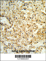 - Formalin-fixed and paraffin-embedded human lung carcinoma reacted with HLA-G Antibody (Center), which was peroxidase-conjugated to the secondary antibody, followed by DAB staining. This data demonstrates the use of this antibody for immunohistochemistry; clinical relevance has not been evaluated.