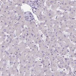 - Immunohistochemical analysis of ARVCF in human liver using ARVCF Polyclonal Antibody (Product # PA5-64129) shows no positivity in hepatocytes as expected.