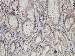 - Immunoperoxidase of monoclonal antibody to ARVCF on formalin-fixed paraffin-embedded human stomach. Antibody concentration is 3 µg/mL.