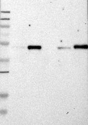 - Western blot analysis of antibody specificity using a routine panel composed of IgG/HSA-depleted human plasma and protein lysates from selected human tissues and cell lines.