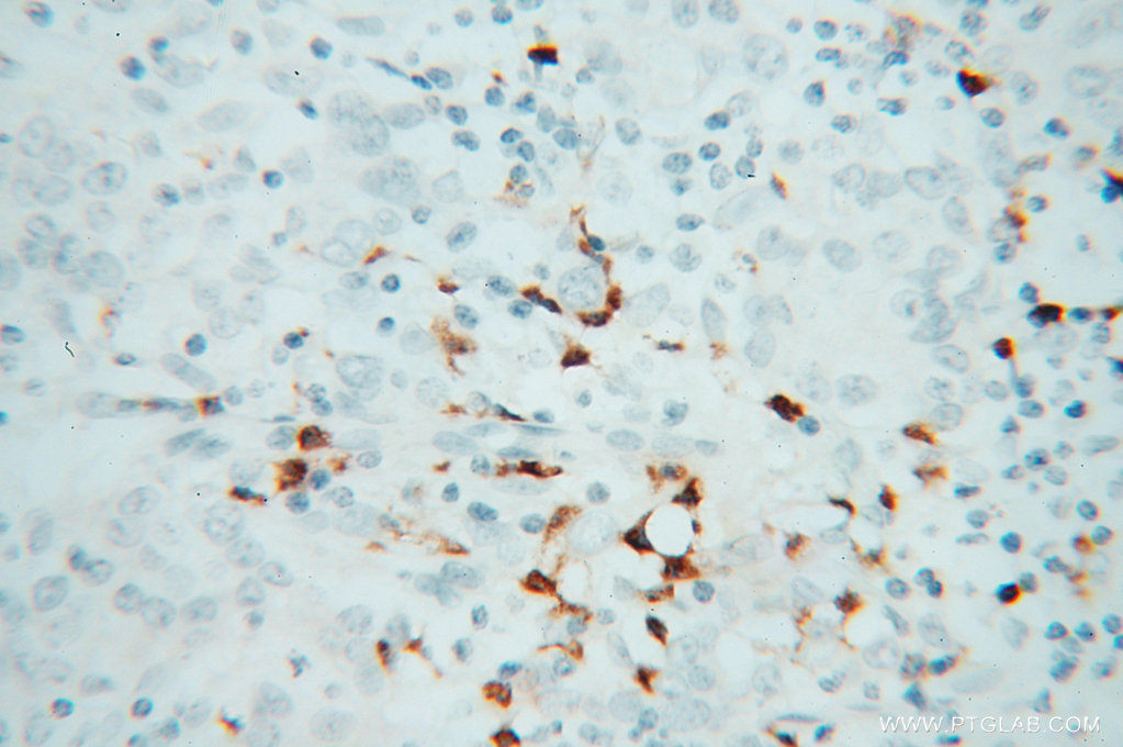 - Immunohistochemical of paraffin-embedded human breast cancer using 13883-1-AP(PRKCI antibody) at dilution of 1:100 (under 10x lens)