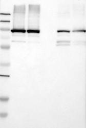 - Western blot analysis of antibody specificity using a routine panel composed of IgG/HSA-depleted human plasma and protein lysates from selected human tissues and cell lines.