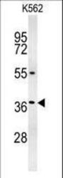- GLP1 Antibody western blot of K562 cell line lysates (35 ug/lane). The GLP1 antibody detected the GLP1 protein (arrow).