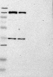- Western blot analysis of antibody specificity using a routine panel composed of IgG/HSA-depleted human plasma and protein lysates from selected human tissues and cell lines.