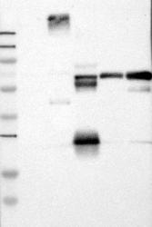- Western blot analysis of antibody specificity using a routine panel composed of IgG/HSA-depleted human plasma and protein lysates from selected human tissues and cell lines.