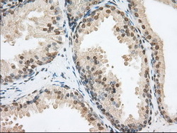 - Immunohistochemical staining of paraffin-embedded Human prostate tissue using anti-PDE4A mouse monoclonal antibody. (Dilution 1:50).