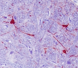 - Calbindin D in Rat Brain. Calbindin D was detected in perfusion fixed frozen sections of rat brain (hypothalamus) using 25 µg/mL Mouse Anti-Human Calbindin D Monoclonal Antibody (Catalog # MAB3320) overnight at 4 °C. Tissue was stained with the Anti-Mouse HRP-DAB Cell & Tissue Staining Kit (brown; Catalog # CTS002) and counterstained with hematoxylin (blue). View our protocol for Chromogenic IHC Staining of Frozen Tissue Sections.