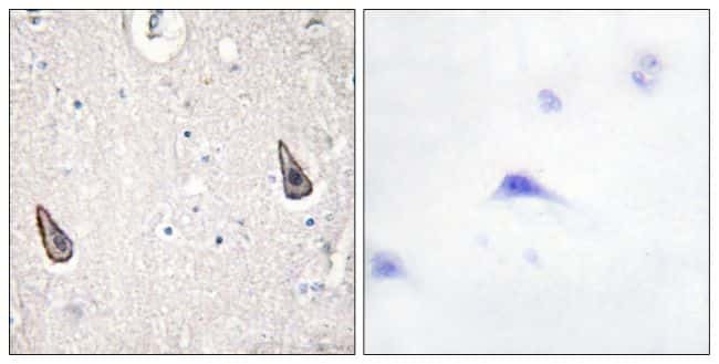 - Immunohistochemical analysis of ADCY5 + ADCY6 in paraffin-embedded human brain tissue using an ADCY5 + ADCY6 polyclonal antibody (Product # PA5-38844).