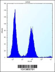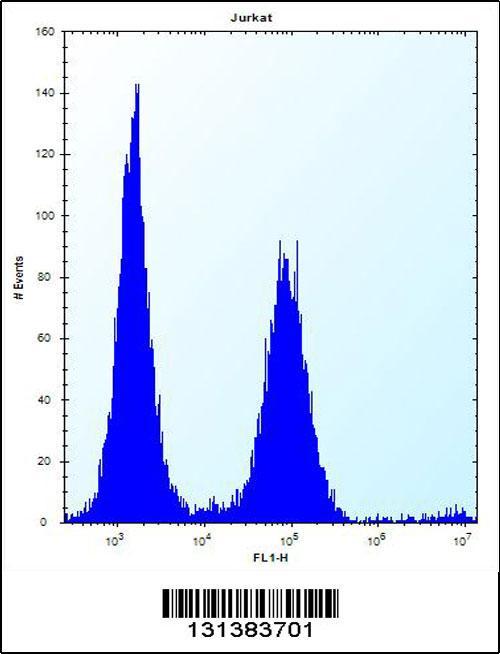 - PSAPL1 Antibody (N-term) (Cat. #OAAB08666) flow cytometric analysis of Jurkat cells (right histogram) compared to a negative control cell (left histogram).FITC-conjugated donkey-anti-rabbit secondary antibodies were used for the analysis.