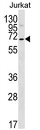 - Western blot analysis of PSAPL1 Antibody (N-term) Cat.-No AP53477PU-NÂ in Jurkat cell line lysates (35ug/lane). This demonstrates the PSAPL1 antibody detected the PSAPL1 protein (arrow).