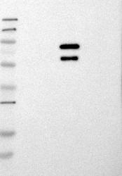 - Western blot analysis of antibody specificity using a routine panel composed of IgG/HSA-depleted human plasma and protein lysates from selected human tissues and cell lines.