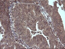 - Immunohistochemical staining of paraffin-embedded Adenocarcinoma of Human endometrium tissue using anti-MAP2K3 mouse monoclonal antibody. (Heat-induced epitope retrieval by 10mM citric buffer, pH6.0, 120°C for 3min, TA505614)