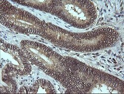 - Immunohistochemical staining of paraffin-embedded Adenocarcinoma of Human colon tissue using anti-MAP2K3 mouse monoclonal antibody. (Heat-induced epitope retrieval by 10mM citric buffer, pH6.0, 120°C for 3min, TA505614)