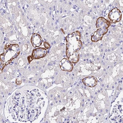 - Immunohistochemistry-Paraffin: METTL19 Antibody [NBP1-92110] - Staining of human kidney shows strong cytoplasmic positivity in cells in tubules.