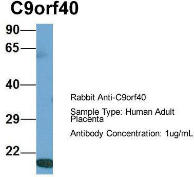 - Host:Rabbit; Target Name:C9orf40; Sample Tissue:Human Adult Placenta; Antibody Dilution: 1.0 ug/ml