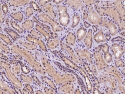 - Immunohistochemical staining of human C9orf40 in human kidney with C9orf40 Polyclonal Antibody (Product # PA5-117820, 1:100 dilution, formalin-fixed paraffin embedded sections).