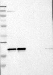 - Western blot analysis of antibody specificity using a routine panel composed of IgG/HSA-depleted human plasma and protein lysates from selected human tissues and cell lines.