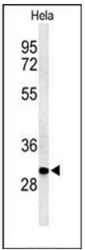 - Western blot analysis of FAM156A Antibody (C-term) Cat.-No AP51500PU-N in Hela cell line lysates (35ug/lane). FAM156A (arrow) was detected using the purified Pab.