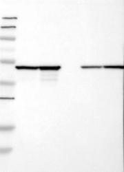 - Western blot analysis of antibody specificity using a routine panel composed of IgG/HSA-depleted human plasma and protein lysates from selected human tissues and cell lines.