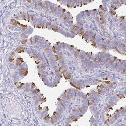 - Immunohistochemical staining of CAPSL in human fallopian tube using CAPSL Polyclonal Antibody (Product # PA5-63579) shows high expression.