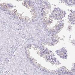 - Immunohistochemical staining of CAPSL in human prostate using CAPSL Polyclonal Antibody (Product # PA5-63579) shows low expression as expected.