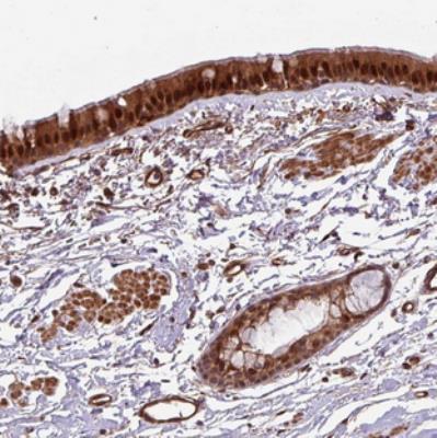 - Immunohistochemistry-Paraffin: C7orf50 Antibody [NBP2-30873] - Staining of human bronchus shows strong cytoplasmic and nuclear positivity in respiratory epithelial cells.