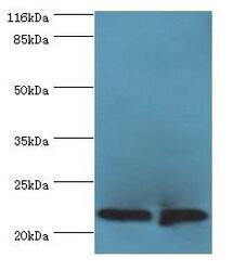 - Western blot All lanes: C7orf50 antibody at 2µg/ml Lane 1: A549 whole cell lysate Lane 2: MCF-7 whole cell lysate Secondary Goat polyclonal to rabbit IgG at 1/10000 dilution Predicted band size: 23 kDa Observed band size: 23 kDa
