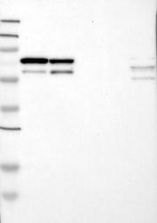- Western blot analysis of antibody specificity using a routine panel composed of IgG/HSA-depleted human plasma and protein lysates from selected human tissues and cell lines.