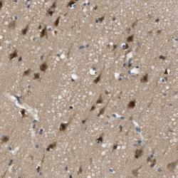 - Immunohistochemical staining of human cerebral cortex shows distinct positivity in neurons.
