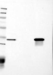 - Western blot analysis of antibody specificity using a routine panel composed of IgG/HSA-depleted human plasma and protein lysates from selected human tissues and cell lines.