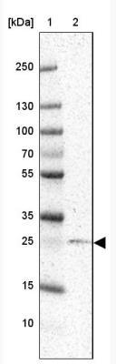 - Western Blot: RIMS4 Antibody [NBP2-31842] - Lane 1: Marker [kDa] 250, 130, 100, 70, 55, 35, 25, 15, 10 Lane 2: Human Cerebral Cortex tissue