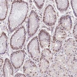- Immunohistochemistry-Paraffin: RIMS4 Antibody [NBP2-31842] - Staining of human stomach, upper shows moderate nuclear positivity in glandular cells.